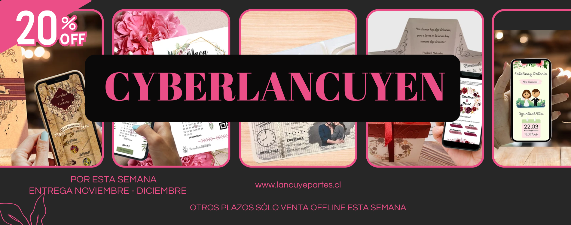 Somos una pyme chilena de partes de matrimonio, hace 20 años innovando en propuestas exclusivas, originales y sustentables para sorprender a tus invitados. "Eclipsa el momento... invita con lancuyen"